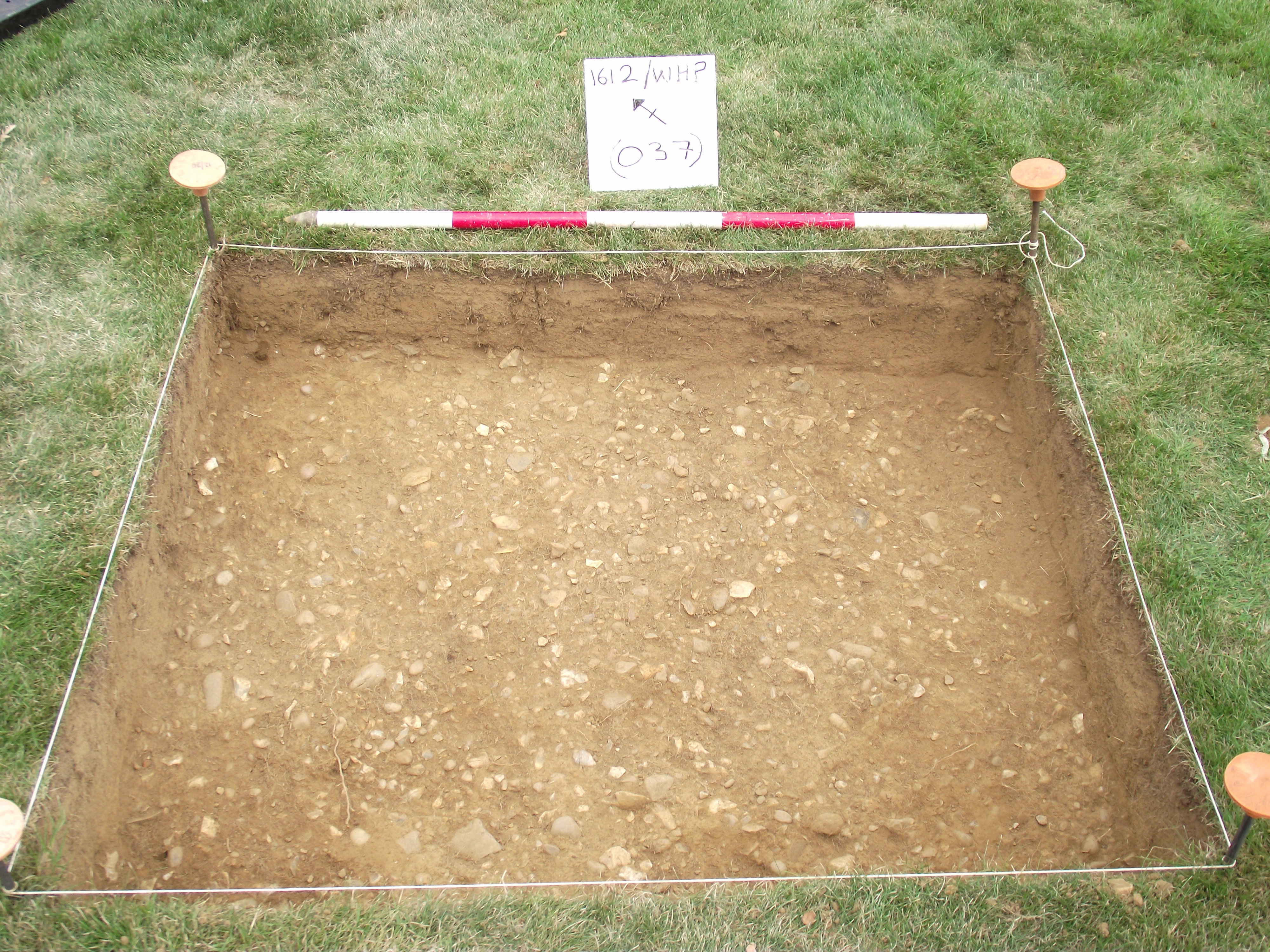 The main road through Wing is aligned North-South but eventually this changed as traffic increased from Aylesbury to Leighton Buzzard perhaps in the medieval period. Geophysics and fieldwalking identified a focus of Roman settlement activity behind the Aylesbury Road close to the Mentmore Road gradually petering out further west. This test pit was excavated to see if the Roman settlement activity did continue further west.