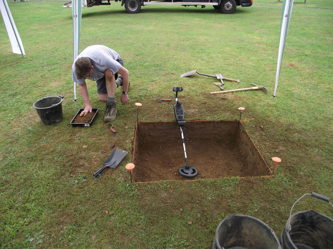 The test pit was excavated on Carnival day and we had a fantastic response from the community of Wing. We plan to excavate another test pit at future carnival events.