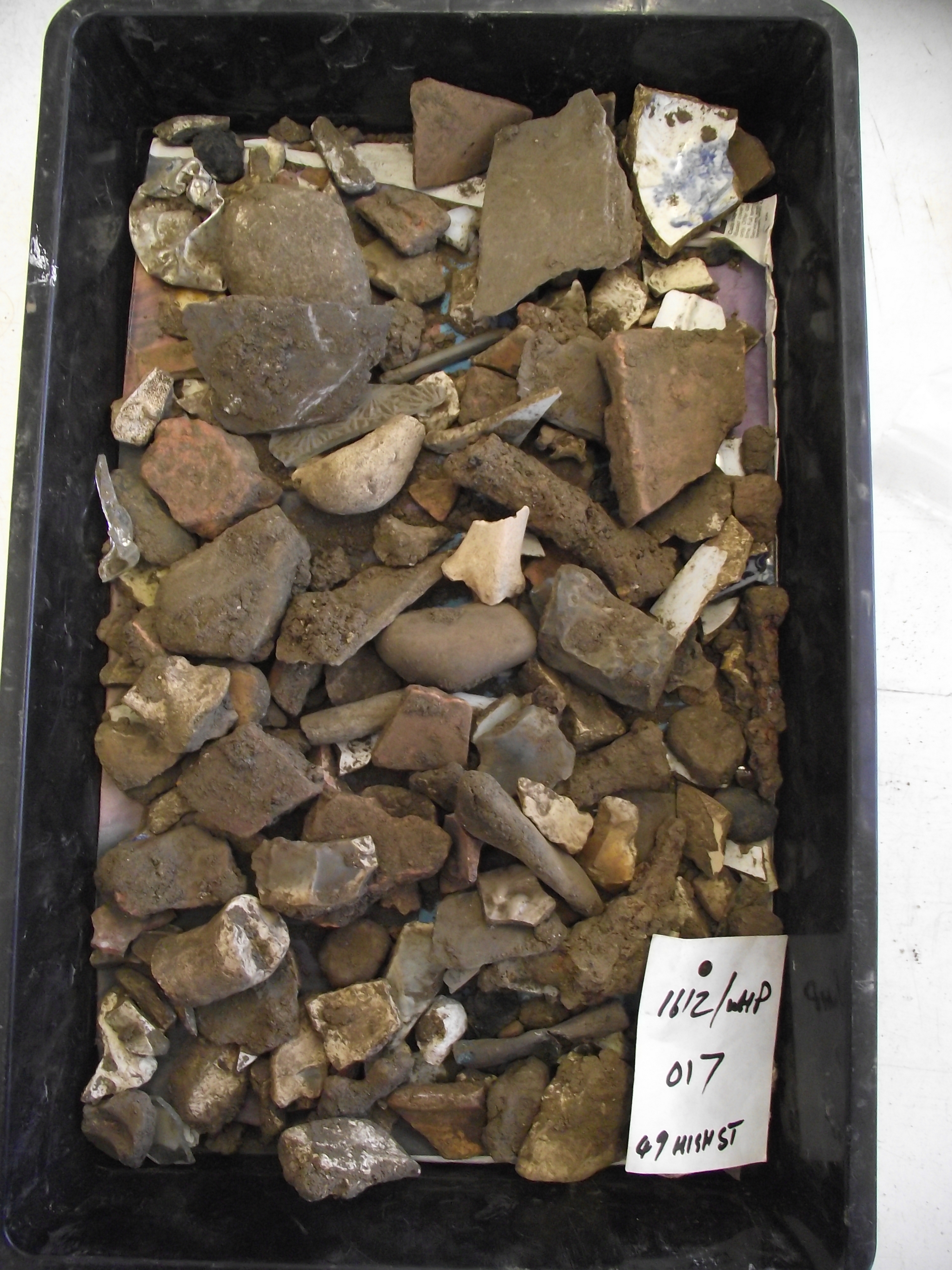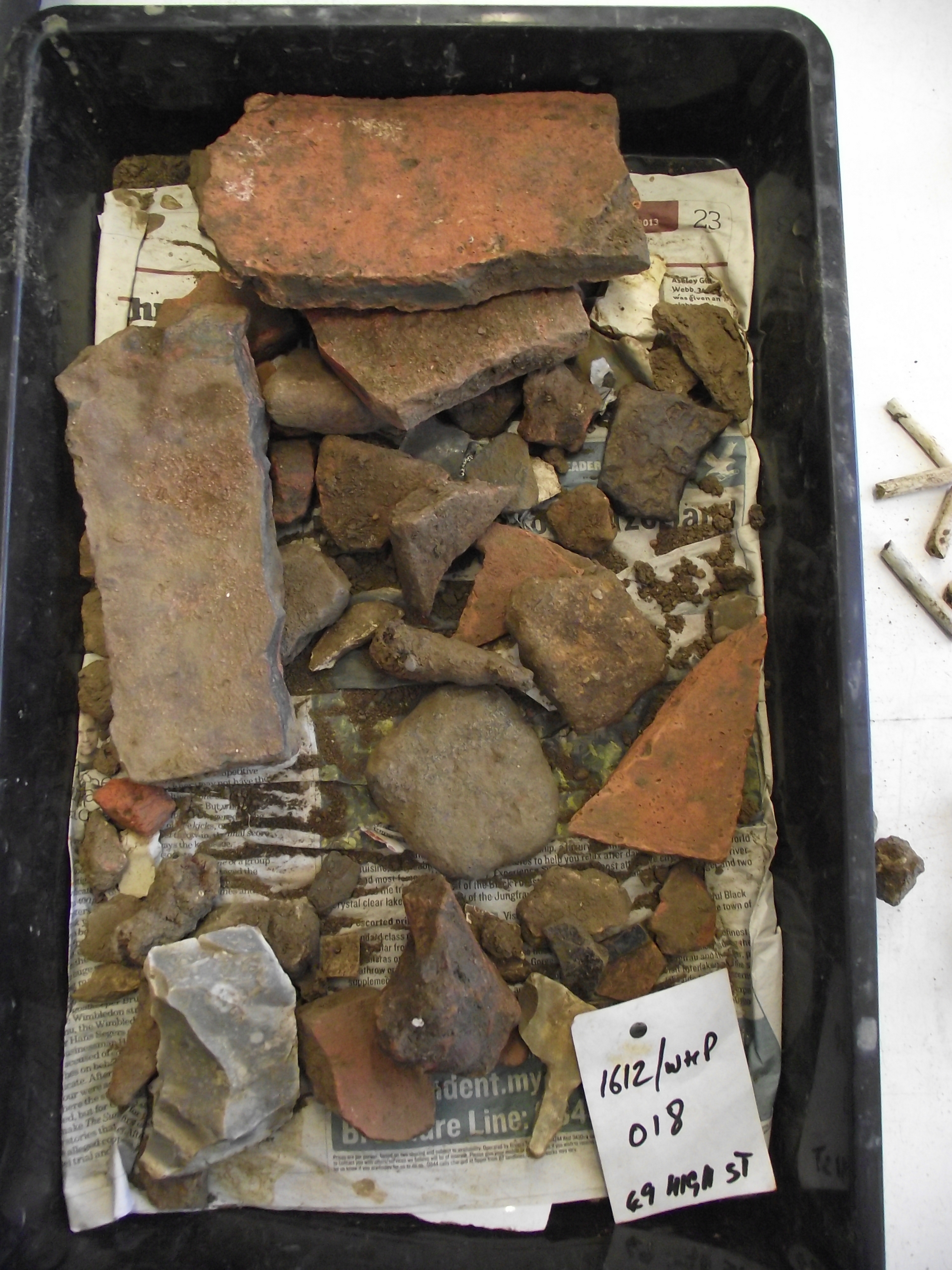 Test Pit 4 was located on the west side of the High Street at its northern end, just south of “Castle Mound”, a scheduled ancient monument. The property once formed a stable block relating to a neighbouring property.